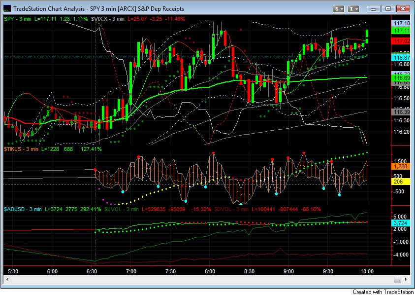 Inside, but looking to break higher as the market recovery continues. Things were looking dicey last night, but the weakness was bought and the panic volume has been declining along with volatility with the VIX seeing added crush. I think we have a better chance of breaking that SPY $117.40 level this go even if not today, then later this week.
