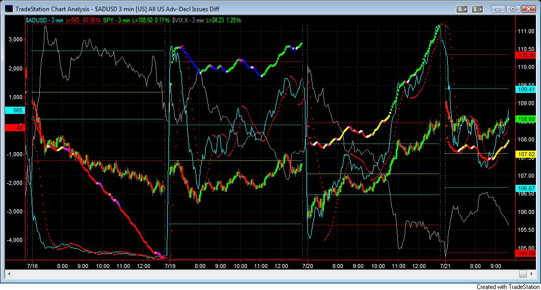 It’s good to be back, still getting in touch with the rhythm of the market, but don’t see any real surprises. Today’s gap tested the flattening five-day moving average and held, but internals are really running sideways and price is now hanging around its VWAP ahead of Uncle Ben.