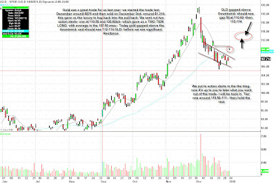 We posted action alerts recently breaking down our reentry into the long gold trade. As of December 22nd, we had accumulated 2 tiers long in the GLDs with an average price around $107.50. With prices gapping up through the recent downtrend line, I will look for a move to $110.50 in order to lighten up back to Tier 1, with locked in profits and some room to run. We should likely see a move up to $112-114 before hitting some resistance. As I have been saying, this trade is not over yet. We got one explosive move, and will continue to follow up on this trade for more upside.
