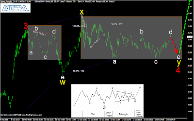 Before so busy earnings season stars had been looking a few cases. Altera W5 top might be close in here with 240 minute chart. One minute is suggesting still impulsive movement to the upside with triple tree. In fact it´s possible it was allready ABC triangle and this latest D is mini impulse for it (if really counting pennies with it).
