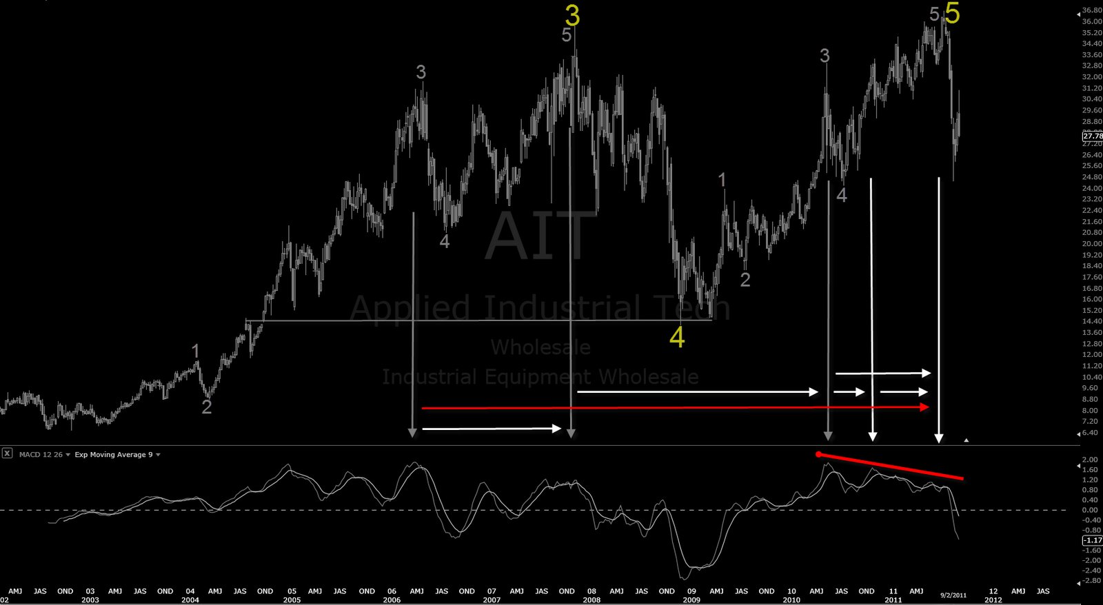 Very standard landing EW 5 valley MACD divergences in the daily chart.