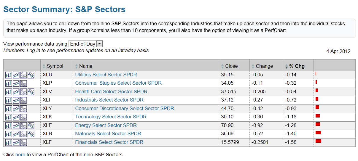 Today’s Sector Summary, courtesy of www.StockCharts.com.