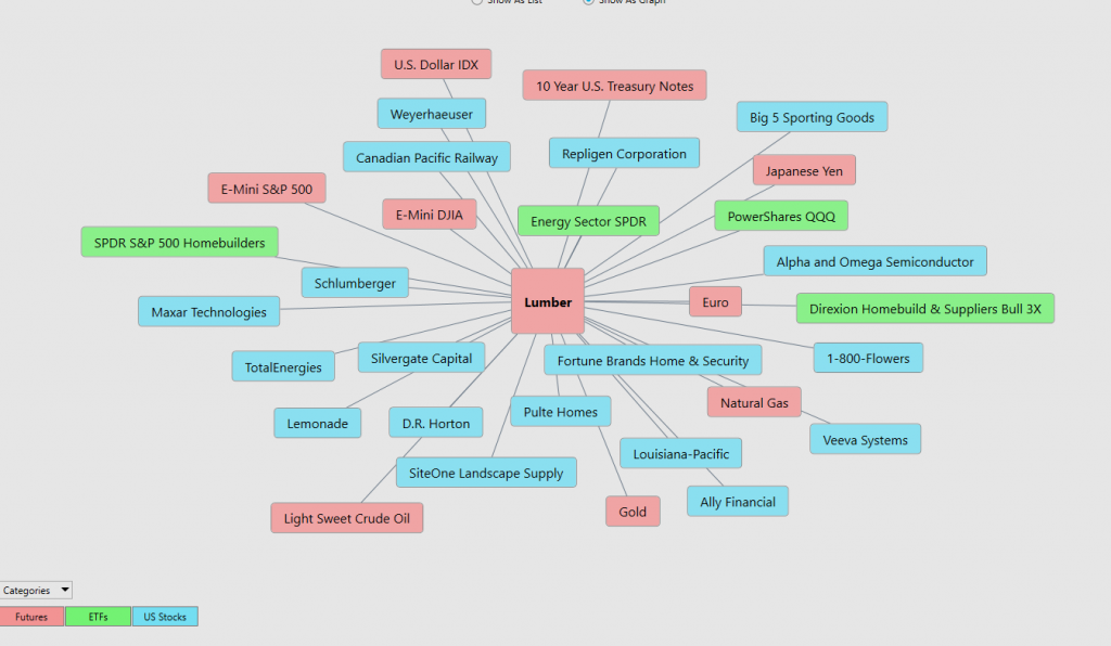 What makes the Vantagepoint Software truly unique is its ability to perform Intermarket analysis and to locate those assets which are most interconnected that are responsible for driving the price of LUMBER higher or lower.