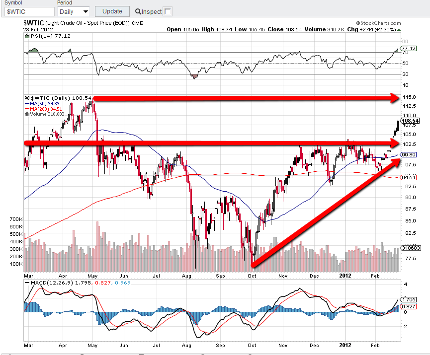 WTI Light Crude Oil closed today at 108.54, as shown on the Daily chart below.