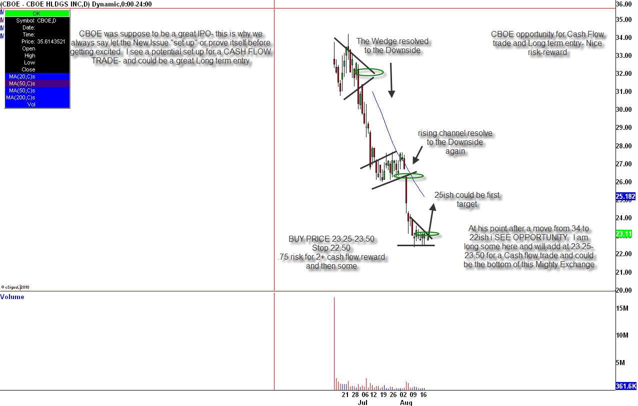 CBOE Holdings was a highly anticipated IPO that proved to be a flop. This is why I always recommend giving new issues time to set up and prove themselves. We do trade them on day one sometimes, but it is usually best to let them settle.