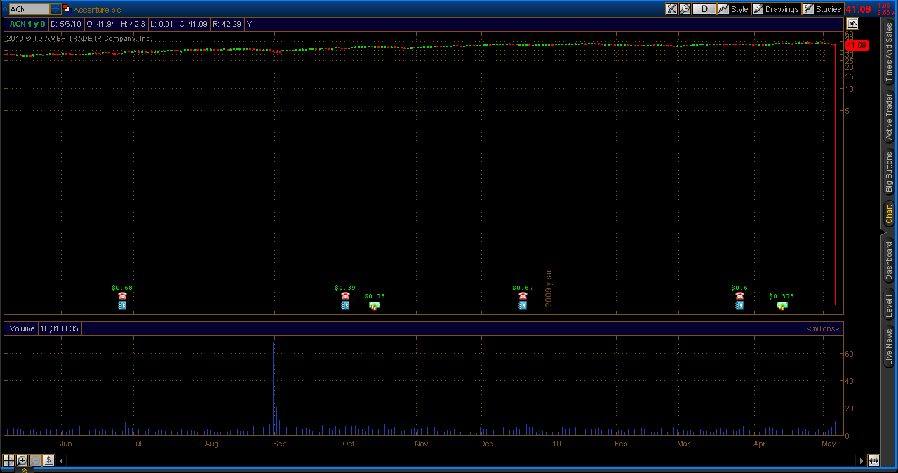 Yet, today’s decline was far more than worries about the eurozone. It seems to me that some firm on the Street completely lost their shirts today in PG and caused a complete market crash. If PG doesn’t shock you, take a look at ACN which hit exactly one penny before rebounding over $40 per share. Wild, wild stuff!