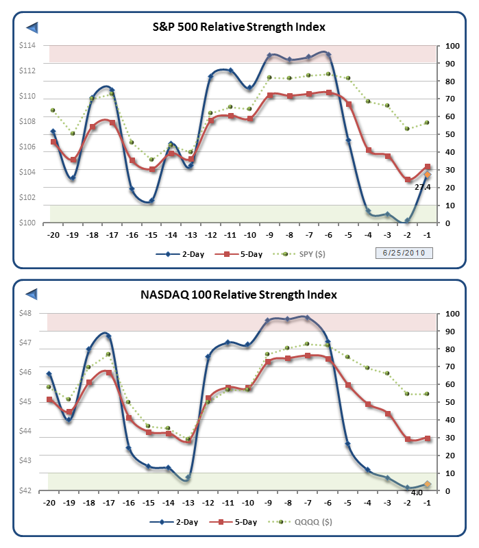 Our technical rotation models’ call to remain in currencies and bonds ended up being the correct one as equities moved relentlessly lower for a -3.5% week-over-week decline in the S&P 500 (SPY). Even worse off were Consumer Discretionaries (XLY -5.1%) and Energy (XLE -5.6%) on the slower than anticipated final GDP readings. However, breadth and short-term relative strength indicators hooked a bit higher Friday, we’ll see if that can’t mount into a small recovery going into the end-of-month/ quarter.