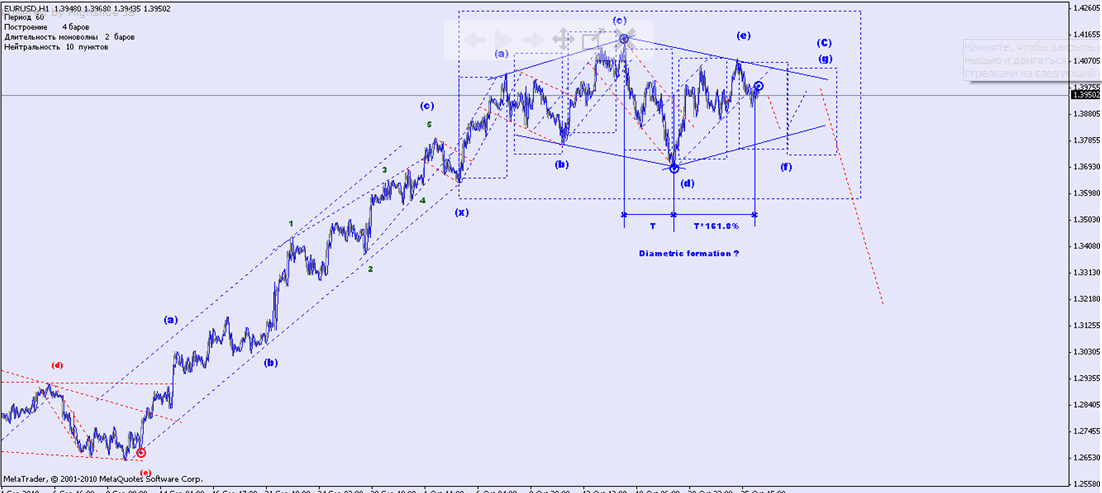 Uncategorized Eur-Usd, EW Diameter, Oct 27, 2010 I got this Neely EW chart from Russian a few hours ago – it is interesting. Perhaps bears might be knocking the doors for a while tomorrow.