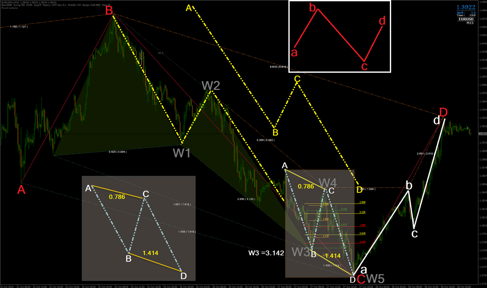 I make these manually which shows potentials for it, ABCD´s all over, however, as my experience never take 0.862 relation line and that´s bearish for Eur-Usd, impulse direction of cource suggest the same – currently trading 61.8% alternate area but more than likely we are either in sideways movement ie. inside of that diameter or then next down will be C after B wave placed.