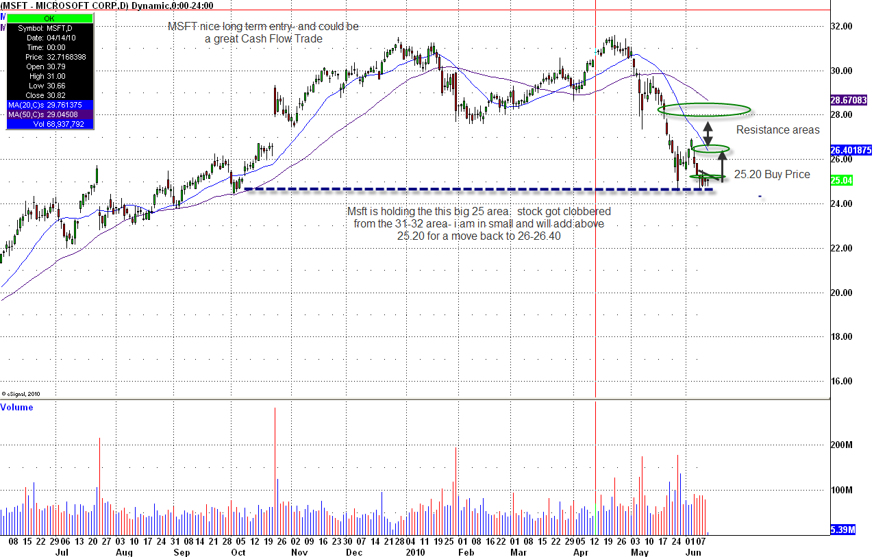 I only trade MSFT a few times a year, and right now it looks like a great opportunity. It looks like a nice longer term entry after a pull back from 31-32