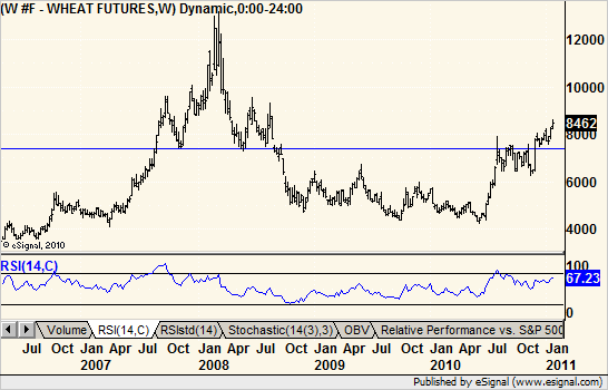 Aside from another Nobel prize winner getting jailed (El Baradei in Egypt after Liu in China), the big story around the world still has to be food prices. That’s one of the reason cited for the riots in Tnisia and Egypt. To the charts: