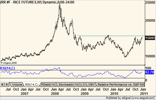 Rice -knocking on the door of a breakout after a nice bull flag.