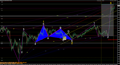 One of kind gartley with british-yen cross occured. Decided to post this because this is not ideal gartley described in the books. Proportions are not correct one, but I had seen this happen pretty often now in recent months over several products and I think it´s worthwhile to pay some attention. What brings additional approvement for it is the fact that my cont. triangle seems to be allways on there when it comes like this.