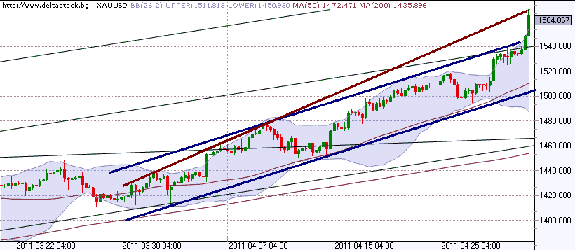 Silver dod not confirmed the move in gold, probably it will catch up very soon.