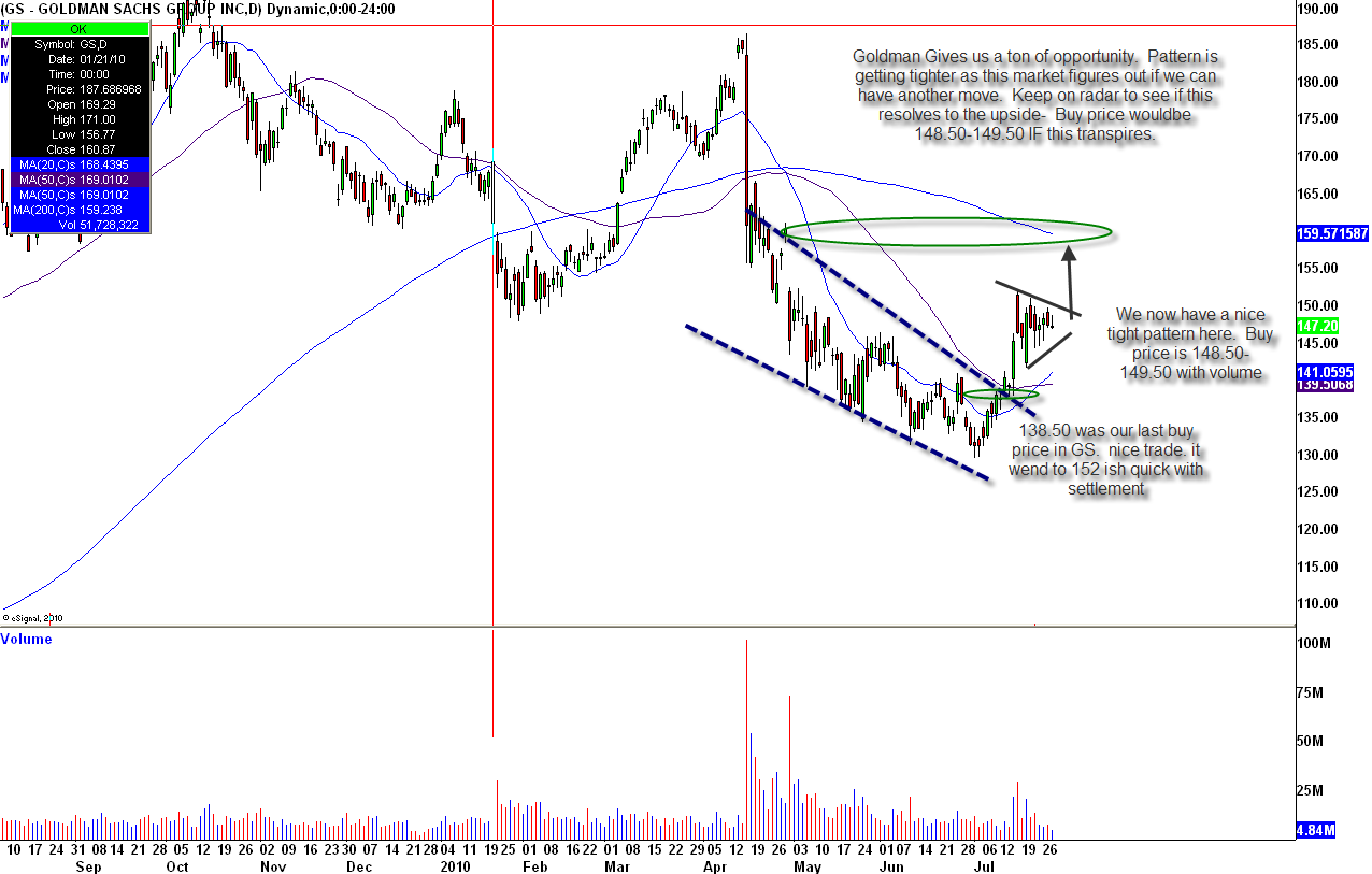 We’ve been trading Goldman stock all year. Looks ready again as the pattern gets tight. The last big buy was 138.50 and it went to 153 after hours when they settled with the SEC.