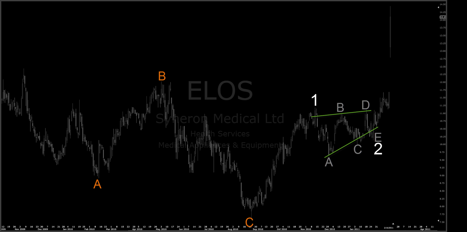 What did I do next was that I decided to take high-risk trade for it, for ELOS – reasonable size also have to confess, I think it was one of those very classicals as those telecoms were, where EW does not leave much open questions of alternates. Huge “silicon valley” Macd also with all the 3 crosses to confirm very last thing.
