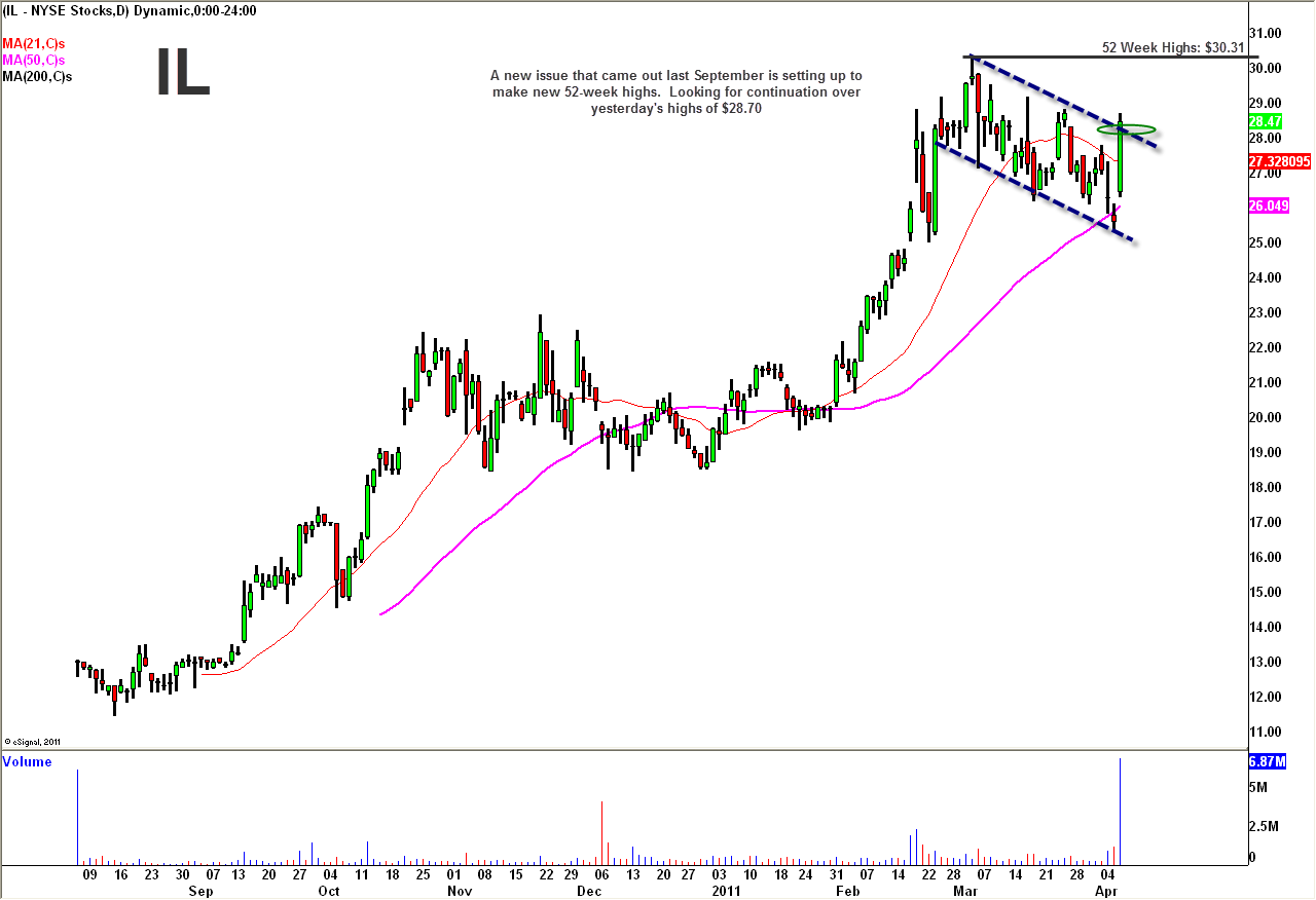 Don’t forget about new issues! IntraLinks Holdings, Inc. (IL), which was issued last September, is just starting to break out of an upper consolidtaion area and looks poised to make new 52-week highs.