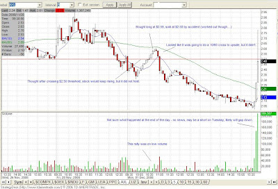 As you can see, AXL would of been great to short from $2.60 down to about $2.05. I’m not sure what happened at the end of the day, but I wouldn’t be surprised if gapped down from here. But the volume was unreal with this spike so I’m not sure what to make of it yet. I will be working on Tuesday, but hope to get back to paper trading on Wednesday.