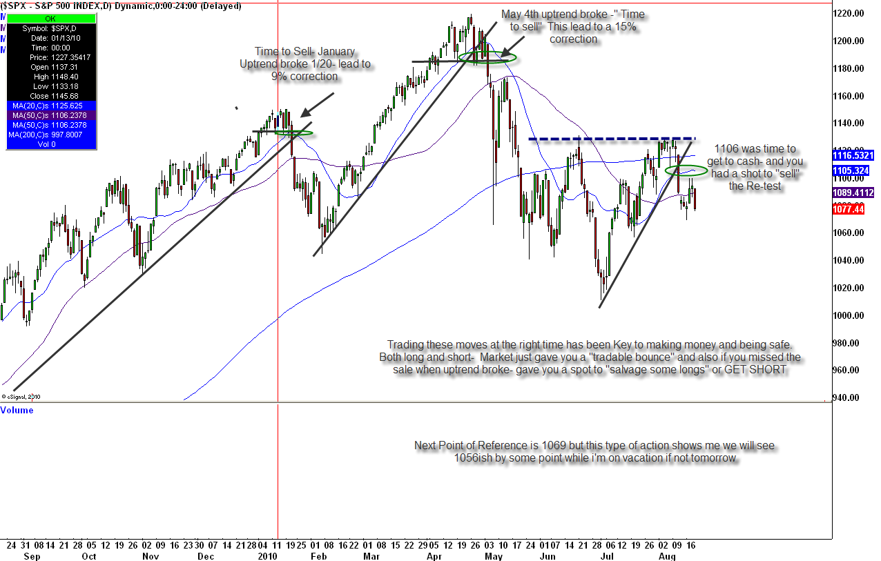 That bounce from 1070 back to 1100 was a gift for those who chose to act quick, or for those who waited for a bounce to sell their longs and salvage a trade. Once we got to a retest of the uptrend, it was time to again start looking short.