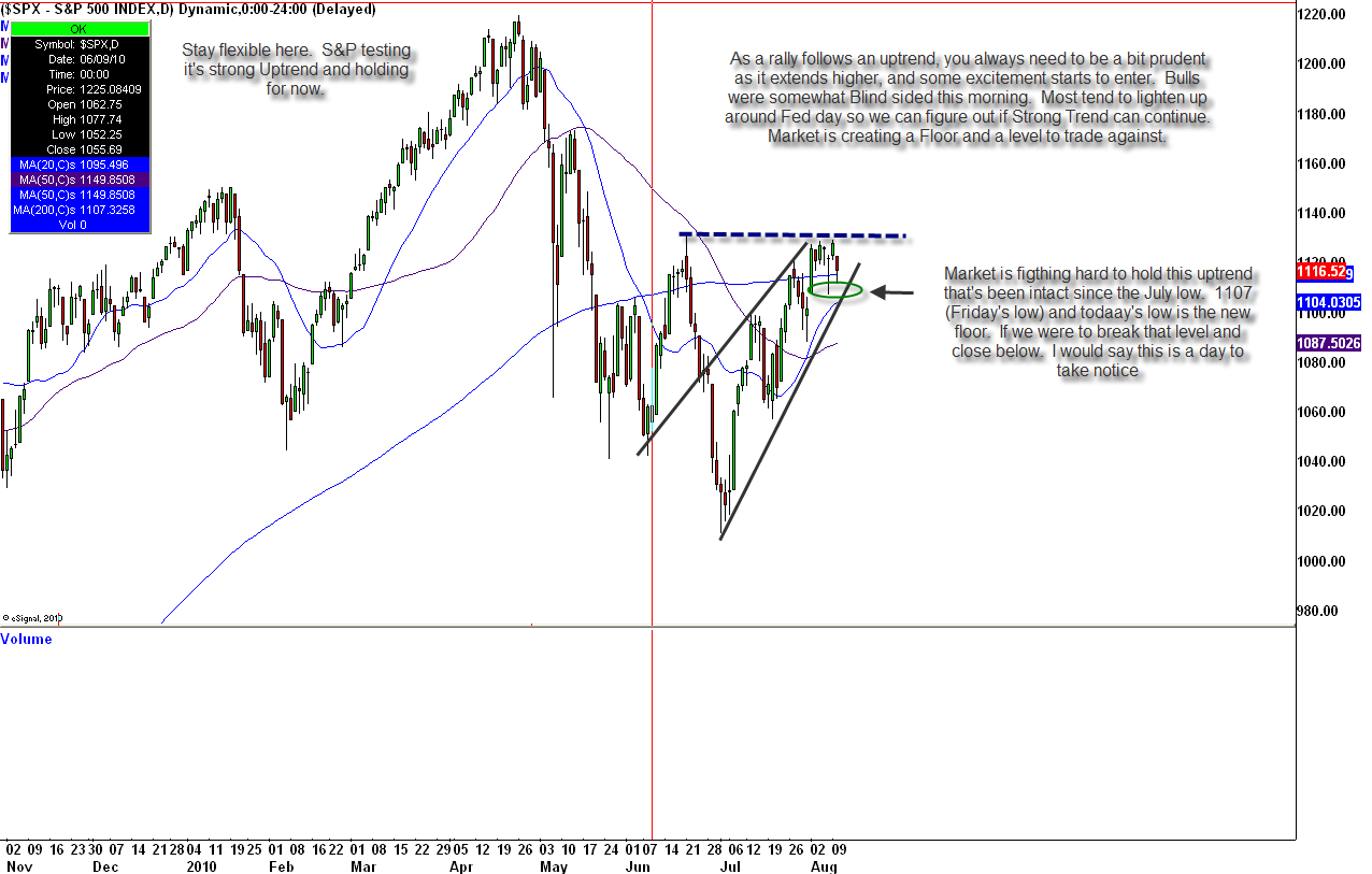 I came in pretty long today as I’ve been riding this uptrend since it started in early July. There have been times to be heavy, times to be light, and times to just sit back and feel it out. This is why I use a tiering system to be able to book profits, but at the same time stay with a move if it’s technically intact.