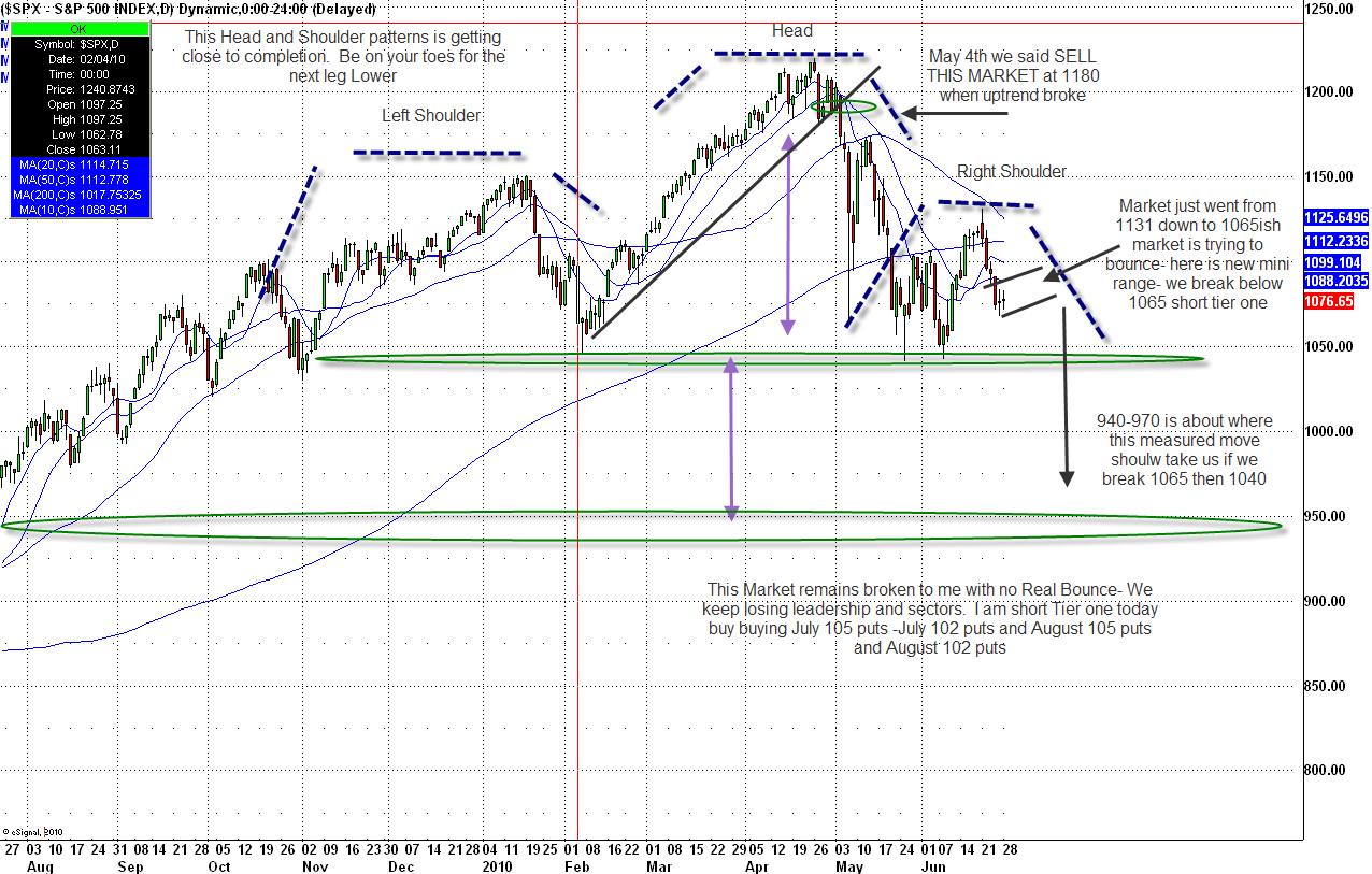 Back to the markets. This head and shoulder’s pattern is getting close to igniting. The S&P 500 is opening under the recent pivot lows of 1067 and now we need to see how they handle the 1050-1055 area then the major at 1040. If we stay below 1060-1065 level for the majority of the day, I will get into my macro tier two short.