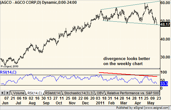 This one is a peer to Deere and Caterpillar. Apparently, the rush to stock up on food and all things agriculture is over. But megaphone patterns do not officially signal a top until that lower border breaks.