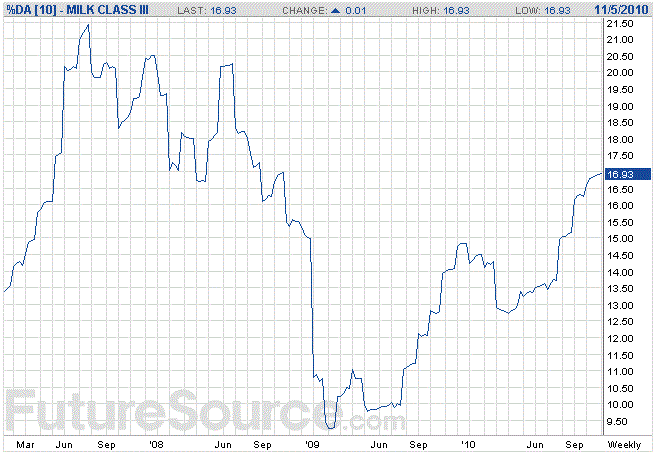 Uncategorized Milk Nov 1, 2010 Here is a chart of the milk futures contract I mentioned in today’s column. Note it has been rallying since early 2009 after falling during the bear. Take that cheeseheads!