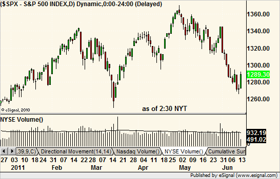 Here is the S&P 500 in mid-afternoon. Even though the day is not over, do you immediately see something suspect? More later.