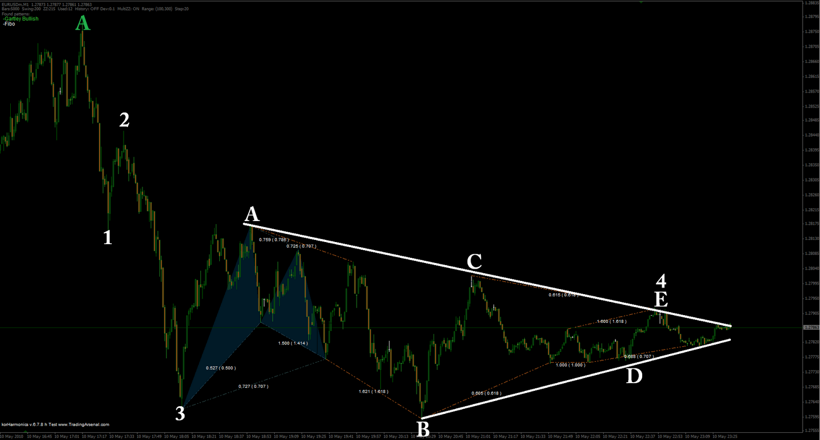 I don´t think this is going to work out, 50% overlap possible is not enough, but it is only just 1 minute chart, so next 61.8% and 78.6% might offer something more interesting. Perhaps tomorrow morning for EU session. Besides previous chart cont. triangle is not cont. triangle. It does not subdive for it correctly, it is just some another triangle, not EW. This would be real EW triangle but while price progress further it can also quickly turn out to be bullish later. Time to close.