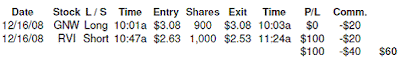 I missed the spike of RVI as a long, I kept watching it go higher and higer and could not believe it went up .45 cents in like 10 minutes. This was after being at $1.20 on Friday. I’m afraid that I did what Muddy warns against doing here about shorting HOD stocks without enough confirmation. At the same time, it seemed like there was triangle forming that Tort talks about at Stack your Cream.