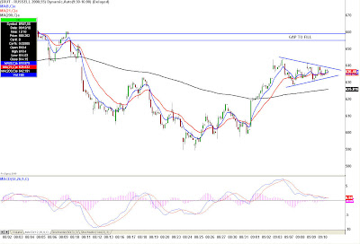 Short term traders should be keeping a watchful eye on the overnight trade as the Russell is setting up in a bullish consolidation pattern, which will most likely resume this morning. I have also included a quick snapshot of the hourly chart on the S&P index which shows an identical gap fill on a gap up. Active traders should watch the first hour to get an idea if this gap up wants to go higher.