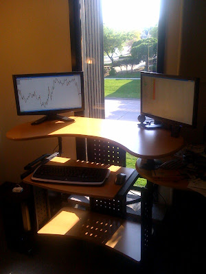 Finally have everything up and running, though haven’t transferred my charting layout and watch list format from the laptop yet. I like the new computer and the office a lot.