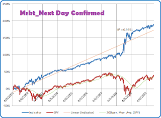 Attached are the up-to-date simple, frictionless, eight year equity curves for the new live, Real-time Next-Day SPY Signals. I owe you more summary statistics than the charts provide, but for the time being they are shown in four flavors for your consideration: