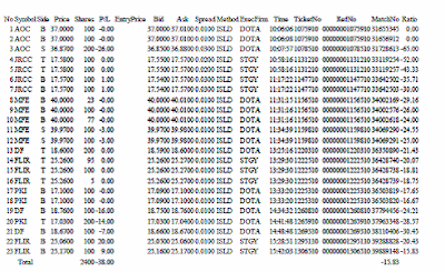 I will review my trades from today over the weekend in detail. My main takeaway is that as always, there is a transition in going from paper to real trading – I had issues with my stop orders that were not prevalent in sim trading this week. I didn’t place a stop order in one trade – anxiously exiting seconds later; my trading platform didn’t execute one stop order; and I manually over-rode one stop order for a .05 shakeout that cost me a half-buck move. Here are my trades today: