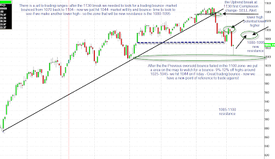 We have a new point of reference from Friday’s reversal low in most stocks and most sectors. The market will probably try and hold that low, and create a new pivot area as we did in the 1,080-1,085 area. That former pivot will now serve as new resistance.