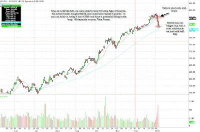 Google (GOOG) the last couple of weeks is a case in point example of this phenomenon. We had a great long trade through $600 and a nice short on the trendline break through $620-622. After the steep sell-off, today we got an excellent long trade on the move through, and back above yesterday’s lows.