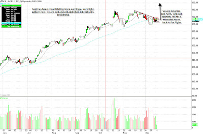 In this morning’s blog, we talked about AAPL’s action in holding the $193-195 zone. Price has been consolidating since earnings in a very tight pattern. When it breaks the downtrend line in place since its November highs, we will add into a second tier. The breakout would open up the possibility for a run-up to its move highs.
