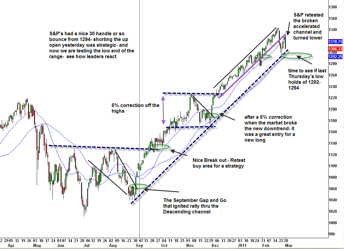 February 22, after seeing signs that the market was ready to pull-in a bit, the futures got hit hard overnight and I highlighted support areas to watch.
