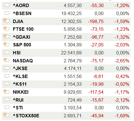 So, if last night’s downer was but a wagging finger of the market, then several things must follow: Asia might suffer some losses – but less than in the US – in today’s market action and may be even on Friday, too. Europe’s bourses will do likewise. The USD will temporarily halt its descend against Asian currencies. But gold prices will stay where they are – above $1600. I still think that the troubling issues will be tackled and last week’s positive sentiments will continue supporting stock markets for a few more weeks.