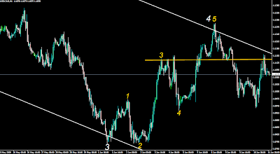 Still inside of 60 log channel. One small impulse up while definetely big W3 placed at wedged bottom, but not breake from this channel yet and there´s bearish HS placed. This is the another reason I also stopped eur-usd shorting for that bottom 61.8% line. If UsaCad drops something fifth from here – eurodollar will ramp up.