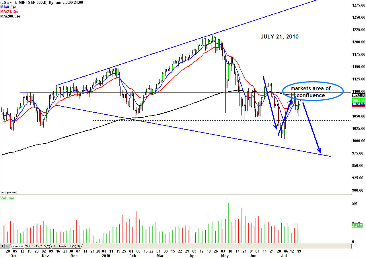 On a blog post dated June 29, 2010 titled What if it’s not a head and shoulder’s? I speculated that this whole market pattern would not play itself out as a classic head and shoulders pattern yet something completely different but with a very similar result nevertheless (see bottom chart). As the market continues to knock the crap out of both perma-bulls and perma-bears looking for continuous market direction we can see that this pattern is doing its job and doing it well.