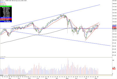 Since mid June I have been updating the “bigger picture” pattern that I believed was developing in the S&P 500 index . I want to take this time to update this situation as it has been building a pattern within a pattern that I believe will be disastrous in the near term for those not prepared. I have included 2 charts: The first is the larger bearish expanding triangle pattern that will take this market significantly lower over more time and the second chart which highlights the most current rising bearish wedge that has been building over the last 30 trading days or so. BE VERY CAREFUL HERE AS WE ARE BREAKING THE LOWER BOUNDARY OF THIS WEDGE. This pattern generally retraces to where it began (1000) and usually much lower.